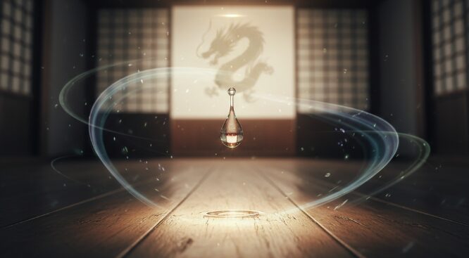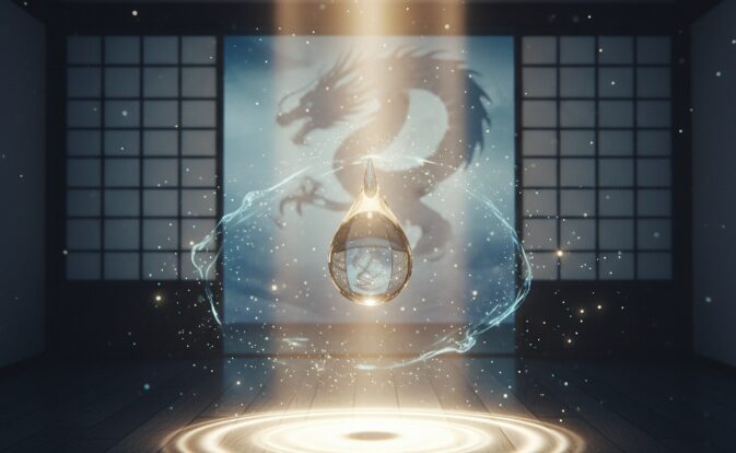 今、あなたが何か迷いや決断を迫られている状況であれば、その答えは天から与えられるというメッセージかもしれません。この一滴は、あなたの意識を一点に集中させ、本質を見抜くよう促しています。直感を信じ、心に浮かんだアイデアを大切にしてください。