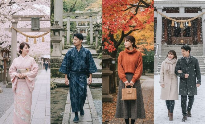 スピリチュアルな色の意味を理解したら、それを季節感と組み合わせることで、より心地よく、理にかなった神社参拝の服装を選ぶことができます。ここでは春夏秋冬、それぞれの季節におすすめのコーディネートをご紹介します。