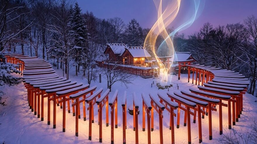 鳥居を一つくぐるたびに、外の世界で身についたネガティブな感情や穢れ(けがれ)が祓い落とされ、魂がクリアになっていくと言われています。特に冬場、真っ白な雪の中に赤い鳥居が映える景色は、視覚的にも「浄化」の作用が強いとされています。